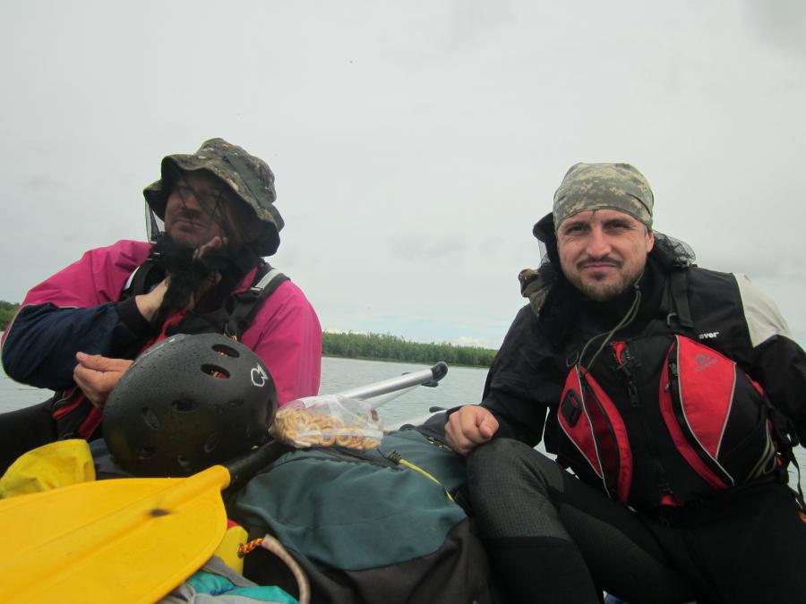 #1846 Турбаза Желанная (где-то возле переправы собирается катамаран). Пока Артем, Валик и Виталя отдыхают на месте первой стоянки, мы с Мишей решили немного поразмяться и сплавиться от оз. Б.Балбанты. -